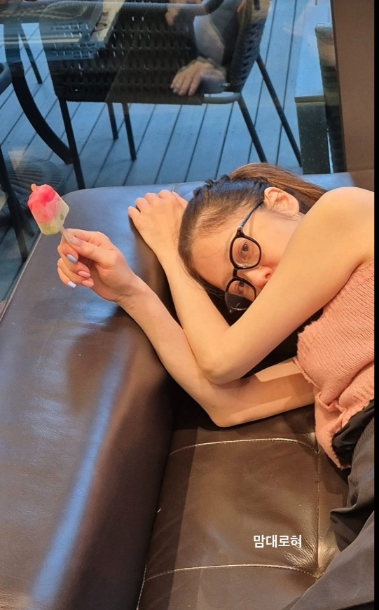 여름하면 떠오르는 그 아이스크림 수박바를 들고, 한껏 웃긴 표정을 지어 보이고 있는데요.