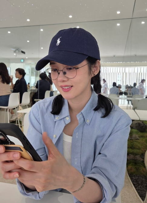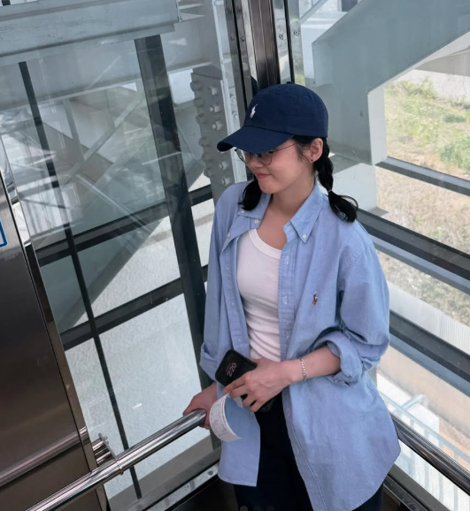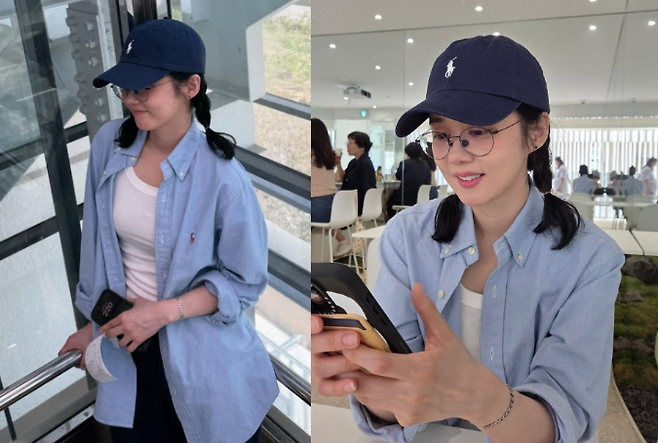 장나라는 최근 블루 오버핏 셔츠에 나시와 데님팬츠로 꾸안꾸룩을 완성했어요. 네이비 폴로 볼캡을 쓰고, 머리를 양갈래로 땋아서 러블리함과 캐주얼함을 더한 룩이었죠.