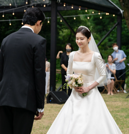 둘은 SBS 드라마 촬영 현장에서 만나 인연을 맺었고, 남편에게 관심이 없다는 것을 알면서도 적극적으로 대시했다고 합니다. 두 사람은 2022년에 결혼했습니다.