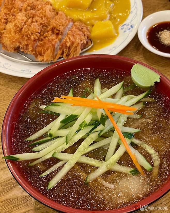 살얼음이 동동 뜬 짙은 갈색 육수는 보기만해도 속이 시원해진다. 냉모밀과 냉우동, 비빔모밀에는 오이가 푸짐하게 올라가니 오이를 싫어한다면 꼭 주문할 때 빼달라고 하면 된다.