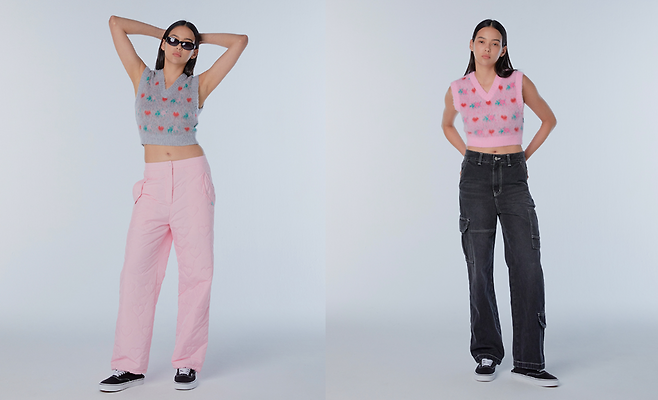 니트조끼로 유니크한 포인트줘보쟈 ><