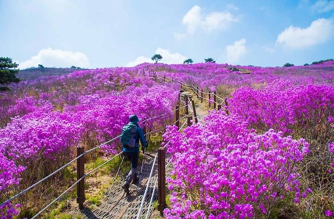 등산로를 따라 걷다 보면 끝없이 이어지는 꽃길을 경험할 수 있으며, 정상까지 오르지 않아도 중간 능선 구간에서 충분히 아름다운 풍경을 감상할 수 있다. 꽃과 함께 펼쳐지는 산세, 그리고 탁 트인 전망이 어우러져 봄철 최고의 산행 코스로 꼽힌다.