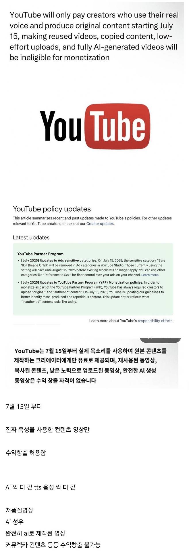 이제 유튜브 에서 TTS를 사용한 영상들은 수익 창출을 못한다고 함