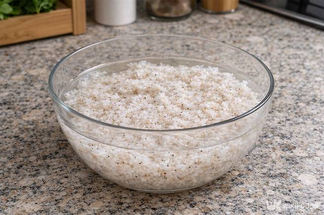 1. 쌀 2컵을 씻어 30분 동안 불려둔다.