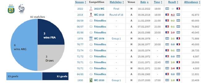 그렇다면 역대 전적은 어떨까. 남아메리카를 대표하는 아르헨티나와 유럽을 대표하는 프랑스답게 두 국가는 오랜 기간 여러 차례 그라운드 위에서 진검승부를 벌였다.