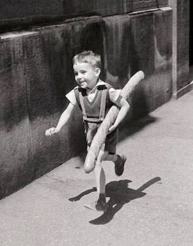 “엄마, 걸어가면서 바게트를 뜯어먹어도 돼?”