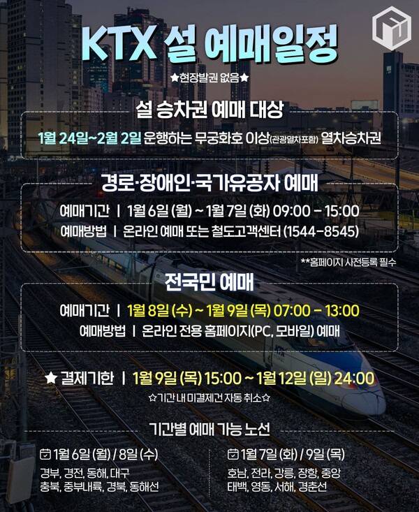 1. 2025 설 연휴 기차표 예매 일정1-1. 2025 설 KTX 예매 일정