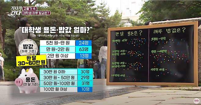 거리로 나가 용돈과 하루 식비 지출이 얼마인지 물었습니다.