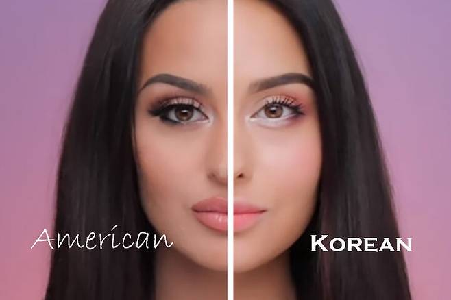 도미니크는 자신의 유튜브 채널에서 얼굴의 반을 나눠 서로 다른 메이크업을 선보이는 방식의 콘텐츠를 선보이며 큰 인기를 끌고 있는데요. 그 중 "미국식 화장법 vs 한국식 화장법"이란 제목의 뷰티 영상이 3백70만 번 이상 조회되며, 해외 네티즌들 사이에서 화제가 된 적이 있습니다. 그럼 도미니크가 분석한 미국식 화장과 한국식 화장 특징에 대해 한 번 살펴보겠습니다.