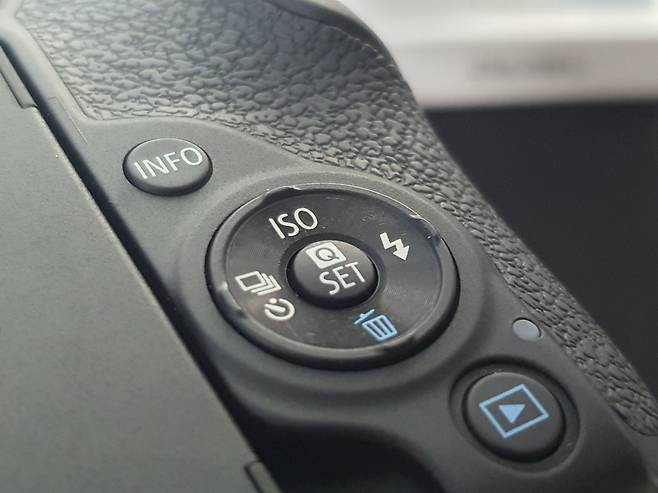 또한 이 부분도 마찬가지입니다. 700D의 경우 일반적인 버튼들로 모두 구성이 되어있지만 R10의 경우 조이스틱같은 형태라 해야할지.. 저런 구성으로 되어있으면서 맨 처음 이뻐보였지만, 생채기가 많이 생기는 단점이 존재했었습니다.