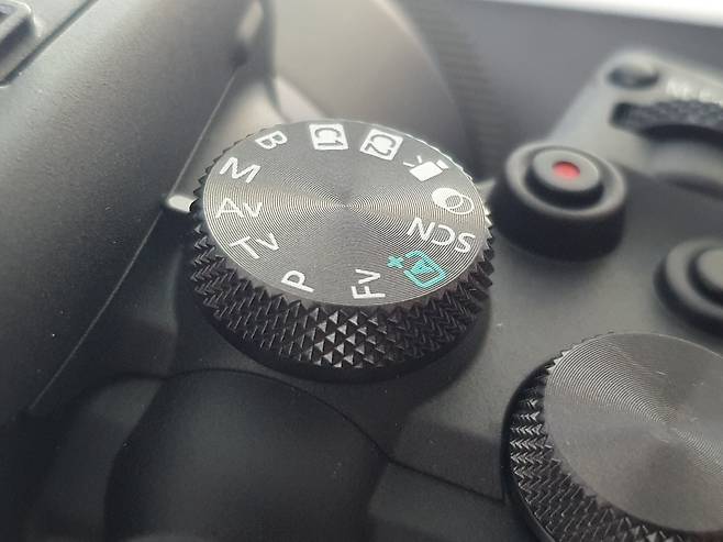 그 외에도 우측 상단의 두개의 다이얼을 통해 셔터 스피드, 조리개, ISO 조절을 하기 편한 부분이 존재했었습니다.