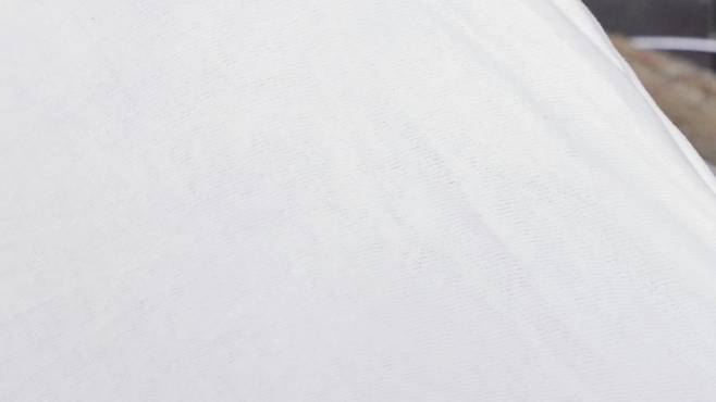 이건 실험을 위해서 흰 옷에 김치국물을 묻혔어요. 보통 빨리 지우지 않으면 지워지지 않아 고생하게 되는데요.