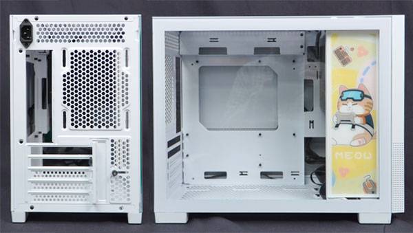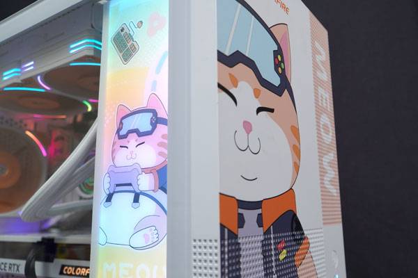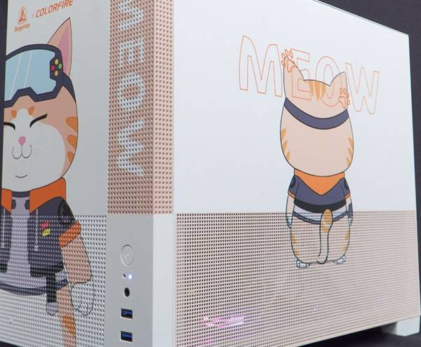 주인님인 '보비'가 새겨진 케이스(컬러풀 MEMPHIS-S MEOW CASE ORANGE)는 확장 슬롯이 다섯 개인 mATX 규격에 맞춘 미니 타워형으로 컴팩트한 크기(220mm x 420mm x 356mm)가 특징이다.