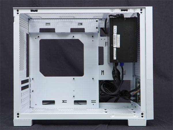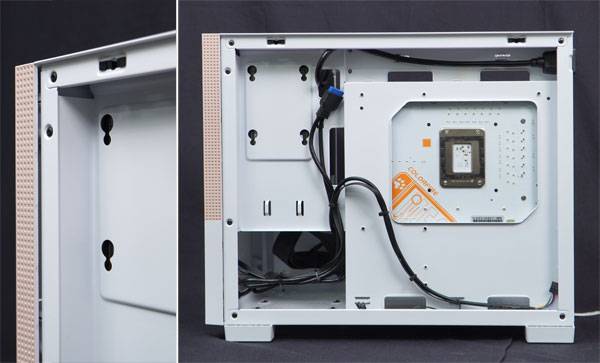 PSU 장착을 위한 가이드 겸 케이스 강성 확보용 프레임에는 2.5" SSD/ HDD 장착이 가능하고, 메인보드 장착부와의 사이에 약 3cm의 넉넉한 공간을 제공한다. 덕분에 상대적으로 좁은 메인보드와 패널 사이의 공간 대신 이쪽을 활용해 편하게 케이블을 정리할 수 있다.