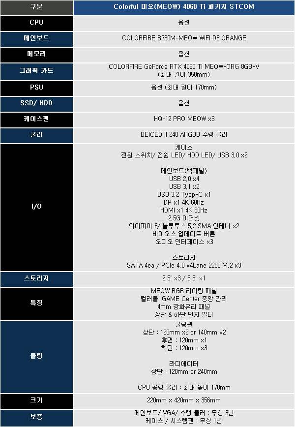 집사를 위한 컴퓨터, Colorful 미오(MEOW) 4060 Ti 패키지 STCOM