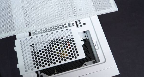 상단과 하단에는 먼지 유입 방지를 위한 필터가 부착되어 있다. 이중 상단 전면부에 PSU를 삽입하는 방식으로 설치하며, 나머지 공간에는 2개의 120mm/ 140mm 쿨링팬 또는 120mm/ 240mm 라디에이터를 장착할 수 있다.