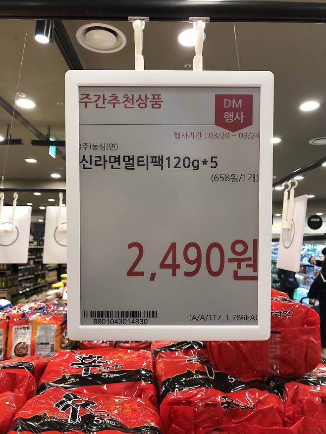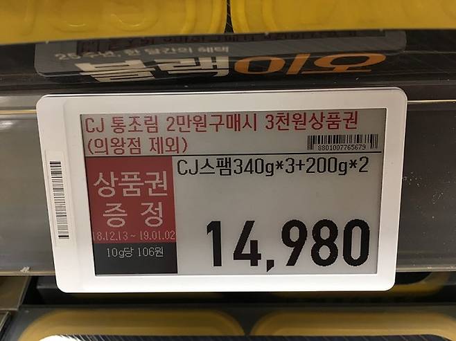 마트에 있는 전자가격표가 이북리더기에 사용되는 e-잉크(전자 잉크)가 사용되기 때문