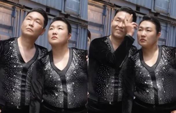 영상 속 싸이는 개그우먼 수지와 함께 똑같은 의상을 입고, 도플갱어 댄스를 선보이는 장면이 담겼다. 심지어 헤어스타일과 메이크업까지 일치해 누가 누구인지 구분하기 어려울 정도로 완벽한 싱크로율을 자랑했다.