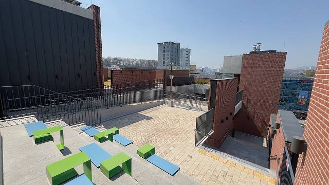 센터가 경사진 비탈길에 세워진 구조라 4층 외부 공간은 인근 주민이 거주하는 동네와 이어집니다. 건물 외부에 1층과 4층을 오르내리는 엘리베이터가 설치돼 있어 경사로를 오르기 힘든 주민들이 많이 이용합니다. 엘리베이터의 운영 시간은 매일 오전 7시부터 오후 10시까지로 센터 이용 시간보다 깁니다. 센터는 화요일부터 금요일까지는 오전 11시부터 오후 8시, 주말은 오전 11시부터 오후 7시까지 운영합니다. 월요일에는 문을 닫습니다.