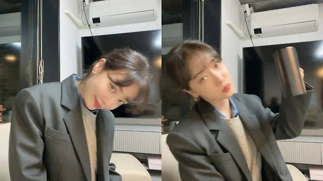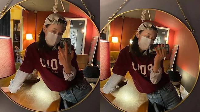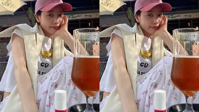 두 번째 사진에서는 전혀 다른 분위기가 연출된다. 밝은 오후 햇살 아래 김히어라는 핑크색 볼캡과 플라워 롱스커트를 매치해 산뜻한 데이타임 룩을 완성했다. 티셔츠 위로 아이보리 컬러 맨투맨을 어깨에 걸쳐 스타일과 실용성을 동시에 챙긴 모습이다. 플라워 패턴이 돋보이는 스커트는 전체적으로 부드럽고 청순한 인상을 주고 핑크 볼캡은 캐주얼한 무드를 더해준다. 여기에 과한 액세서리 없이 작은 이어링 하나로 마무리해 균형 잡힌 코디를 선보였다.