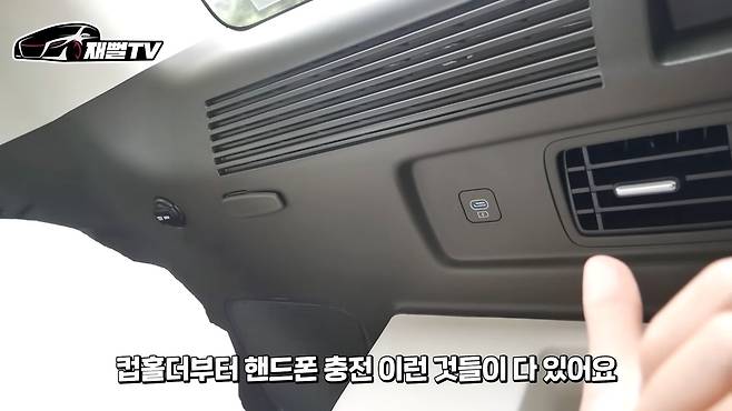 산타페 만큼 3열 활용도가 많은 차가 생각보다 많이 없거든요. 컵홀더부터 핸드폰 충전하는 기능들이 다 있어요. 220V 콘센트랑 에어컨 조절하는 것까지 기본적으로... 정말 활용성 부분에서는 이번 산타페가 정말 잘 나온 것 같습니다.