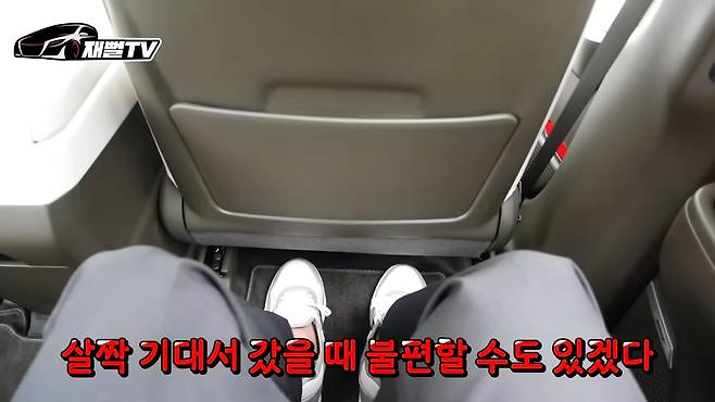 3열에 앉아 봤더니 주행 성능이라든지, 승차감, 품절음 같은 거 외에도 칭찬할 것들이 굉장히 많네요. 3열에 성인이 편하게 갈 수 있는 차 많이 없잖아요. 제가 지금 다리를 편하게 하고 가고 있어요.