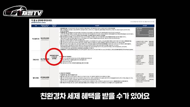 판매량 보시면 알겠지만 2.5 가솔린 모델을 70%로 많이 샀단 말이에요. 그 이유가 뭐냐면 1.6 하이브리드 같은 경우는 전륜 모델을 선택해야지만 친환경차 세제 혜택을 받을 수가 있어요.