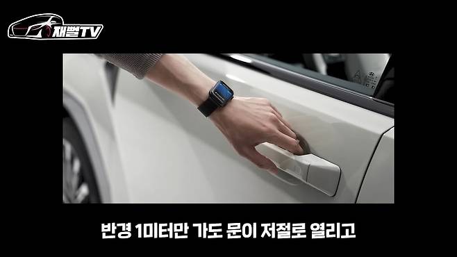 그랜저나 소나타, EV9 같은 차들은 아직까지도 핸드폰을 꺼내야 하는 상태였거든요. GV80은 꺼내서 어플까지 켜서 문 열림 버튼을 또 눌러야 해요. 생각보다 이 과정이 되게 귀찮거든요. 정말 키가 없어지는 시대가 온 것 같아요.