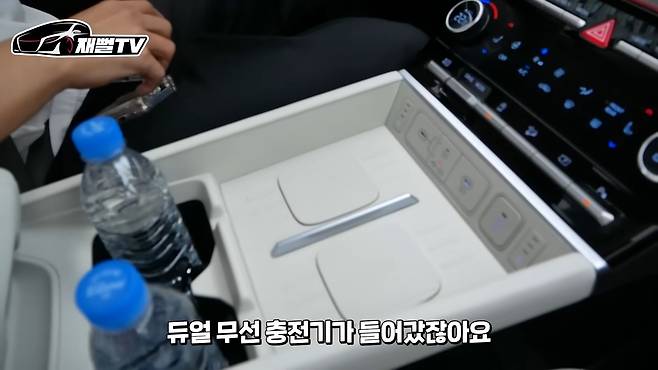 편의장비로 듀얼 무선 충전기가 들어갔잖아요. 충전기에 휴대폰을 하나 놓았을 땐 잘 작동해요. 하나 더 놓았을 때도 듀얼로 잘 되네요.
