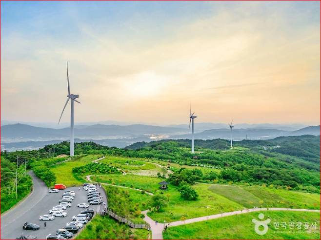이곳에서 생산하는 전력량은 무려 1만여 가구가 1년간 사용할 수 있는 4만 MWh 규모.거대한 풍력발전기들이 능선을 따라 배치되어 이국적인 장관을 연출합니다.