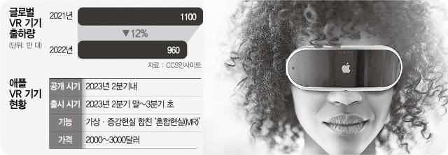 소문만 무성하던 애플 VR(가상현실) 기기가 올 상반기에 모습을 드러낼 수 있다는 관측이 잇따르고 있다. 이르면 올해 1분기나 2분기 내 공개돼 가을부터 실제 제품을 만나볼 수 있을 것이라는 전망도 나온다. 최근 메타버스 붐이 꺼지며 VR기기 판매량이 줄어드는 가운데, ‘애플표 VR기기’가 시장에 반전을 줄 것이라는 기대감이 이어진다.