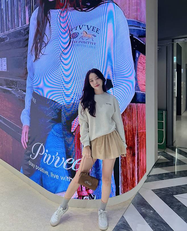 그녀의 스타일은 심플하면서도 경쾌했다. 연회색 스웨트셔츠는 여유로운 실루엣으로 편안함을 담았고, 뒷면에는 스포티한 그래픽이 프린트돼 캐주얼한 무드를 강조했다. 상의는 팔꿈치까지 자연스럽게 덮으며 루즈핏의 매력을 전했고, 소매 끝을 살짝 잡은 동작은 소녀다운 분위기를 더했다.