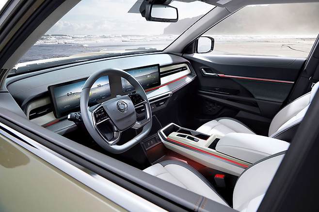 내외부 색상에도 새로운 옵션이 추가되었습니다. 라떼 그레이지, 그랜드 화이트, 아이언 메탈, 포레스트 그린, 댄디 블루, 스페이스 블랙 등 다양한 색상이 제공되며, 특히 인기 있는 토레스 EVX의 내부 디자인을 반영한 그레이 투톤 인테리어가 적용되었습니다.