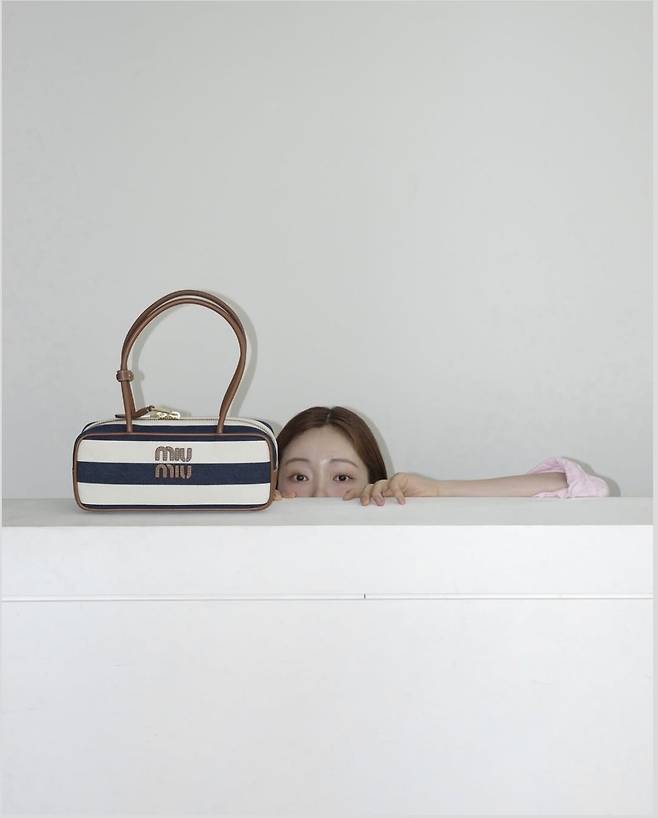 함께 매치한 미우미우 스트라이프 핸드백은 미니멀한 룩에 경쾌한 포인트를 더하며 브랜드 아이덴티티를 톡톡히 살렸습니다.