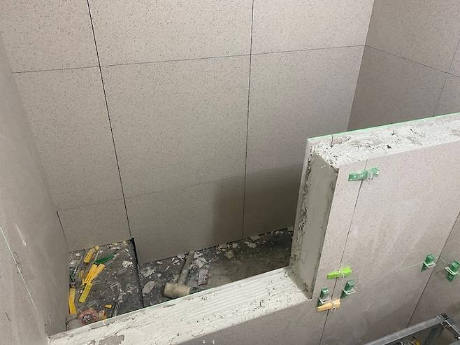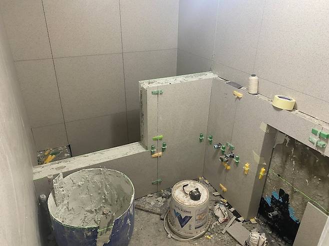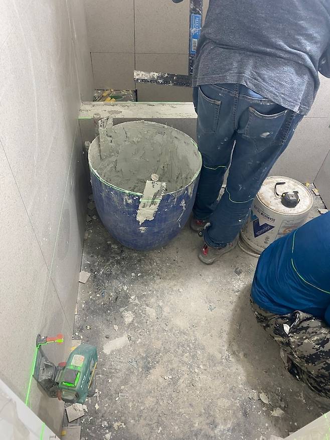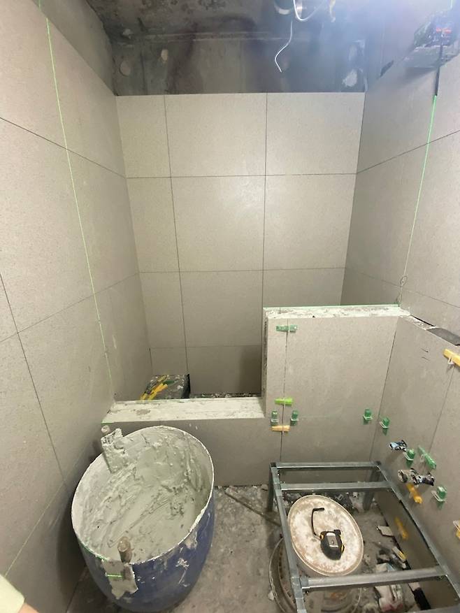 방수가 끝나고 타일 작업이 시작됐다. 타일을 고르는 건 쉽지 않았다.