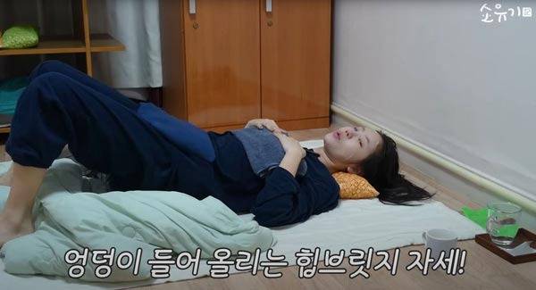 영상에서는 힙브릿지 동작과 허벅지 뒤쪽을 늘리는 스트레칭을 직접 시연했다.