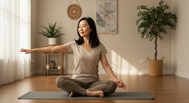 요가는 단순히 몸을 움직이는 운동이 아니라, 몸과 마음을 동시에 돌보는 지혜로운 습관입니다.