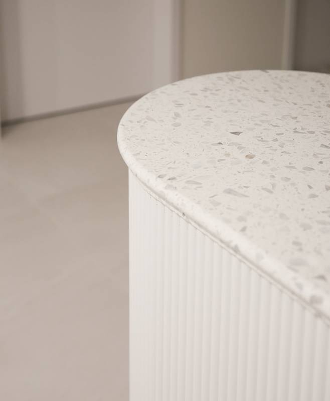 가까이에서 보는 테라조 아일랜드의 모습은 이렇답니다. 튀지 않고 은은한 테라조라서 정신없어 보이지 않고 깔끔하죠?