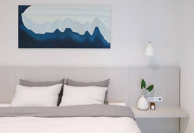 정면에 보이는 아트 월이 바로 거실 빔 스크린 자리에도 있던 동일한 아트월이에요.