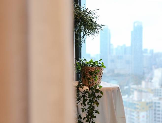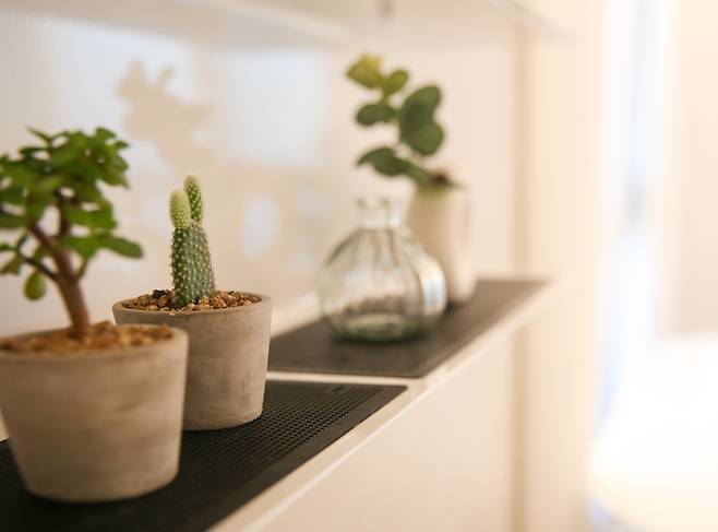 요즘 플랜테리어가 트렌드이기도 하지만, 밋밋할 수 있는 공간에 식물을 들이면 활기가 차요. 푸른 색감을 집 안 곳곳에서도 느낄 수 있어 그 자체로 힐링이 되는 거 같아요.