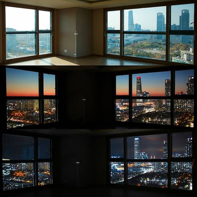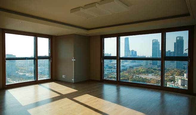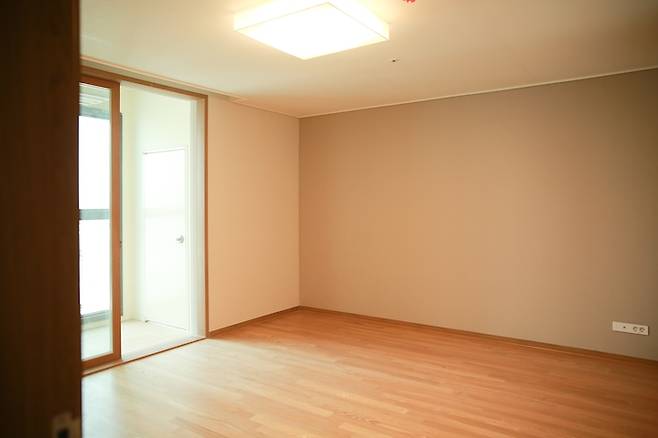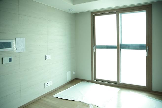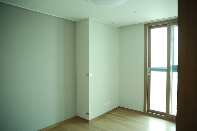 이 사진은 아파트가 완공된 후, 사전 점검을 하러 갔을 때 찍은 거실 모습이에요.