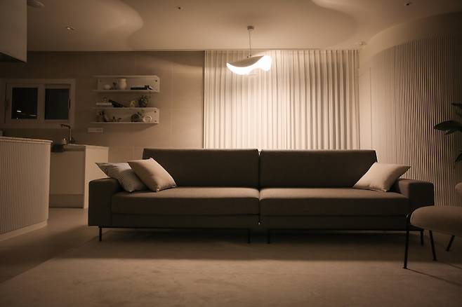거실 창가 라인을 따라 간접 조명을 시공했어요. 모든 조명을 소등하고 창가 가장 바깥쪽의 등만 켜놓았을 때 특히 분위기 있어 보여서, 시공 후에 참 만족스러웠던 부분입니다. :)