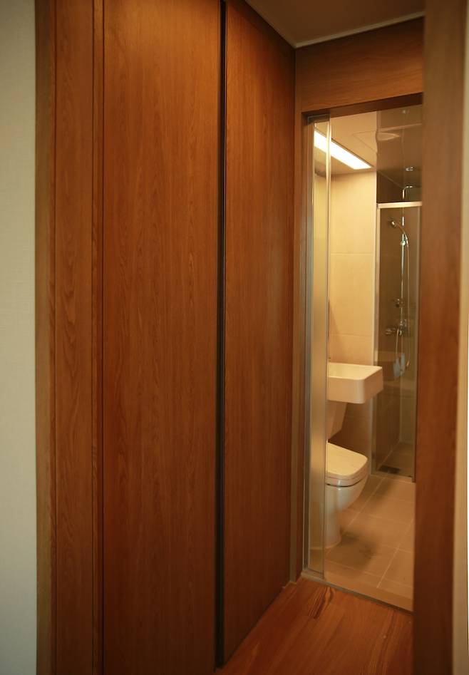 드레스룸의 바닥 역시 타일이 아닌 마루를 선택했고 안방과 같은 컬러라 깔끔해요.