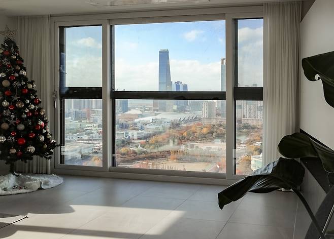 거실의 양창으로 크게 뚫린 뷰가 멋졌고, 특히 메인 창에서 바라보는 도심 속 공원 뷰에 반해 선택했어요. 뉴욕 센트럴 파크 뷰가 부럽지 않아요! ^^