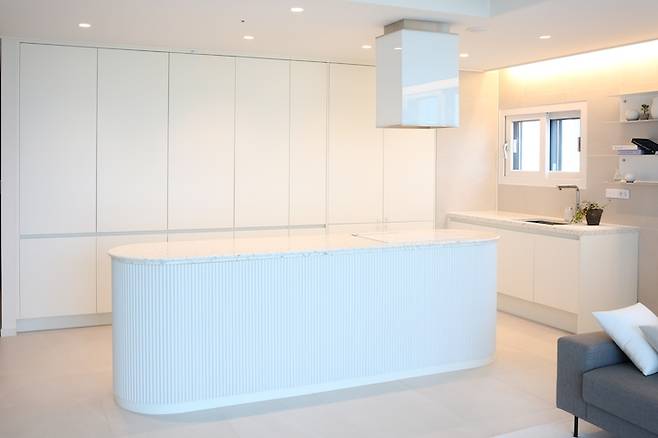 가까이에서 보는 테라조 아일랜드의 모습은 이렇답니다. 튀지 않고 은은한 테라조라서 정신없어 보이지 않고 깔끔하죠?