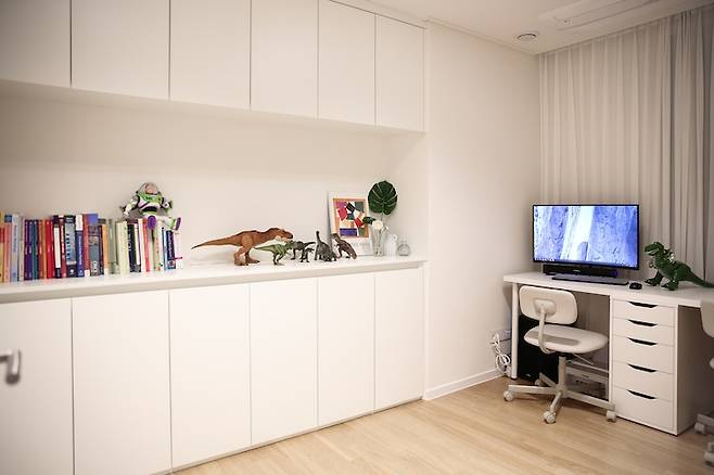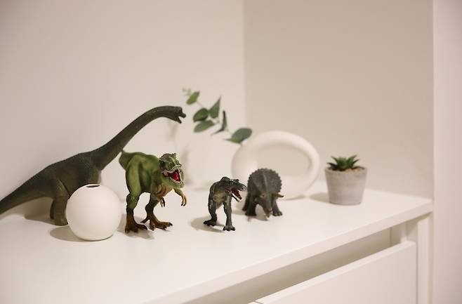 아이방이라 인테리어 소품이 따로 필요 없네요. 애기 공룡 군단들이 바로 오브제로 활용되고 있답니다!