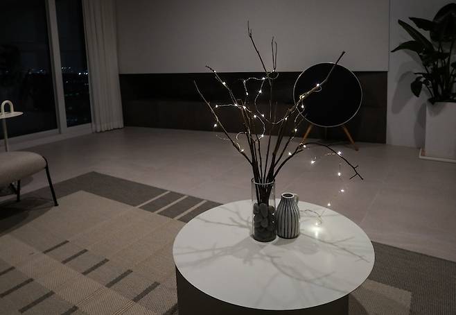 정면에 보이는 아트 월이 바로 거실 빔 스크린 자리에도 있던 동일한 아트월이에요.