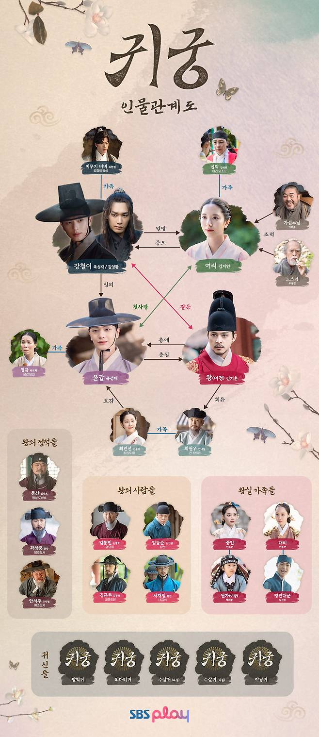 SBS 금토드라마 ‘귀궁’은 영매의 운명을 거부하는 무녀 여리와 여리의 첫사랑 윤갑의 몸에 갇힌 이무기 강철이가왕가에 원한을 품은 팔척귀에 맞닥뜨리며 몸과 혼이 단단히 꼬여버리는 판타지 로맨틱 코미디입니다.