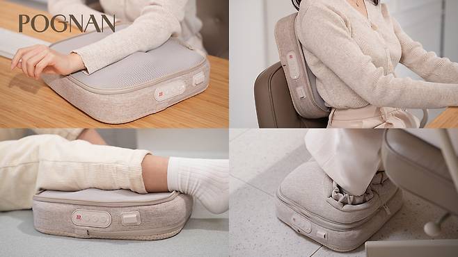 뿐만 아니라, 탈부착이 가능한 포그난의 발 커버를 분리하면 표면적이 넓은 등허리부터 팔과 손목, 종아리, 허벅지 등 피로도가 누적된 다양한 신체 부위에 폭넓게 사용할 수 있는 올인원 마사지 케어가 가능하다.