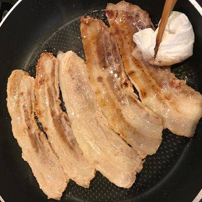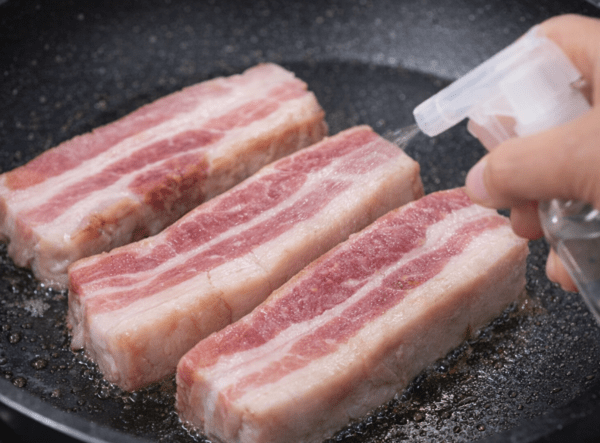 삼겹살 굽기 전, 미원물로 살짝 뿌려주는 것만으로 충분하다